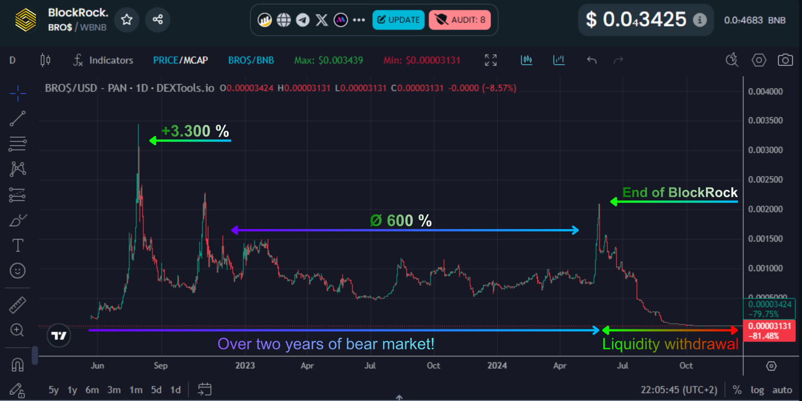 The development of Bros & Gains began in 2021, initially under the name BlockRock. However, due to the similarity to the name of the global asset manager BlackRock, we were legally requested to change our name. As a result, the project was later rebranded as Bros & Gains.